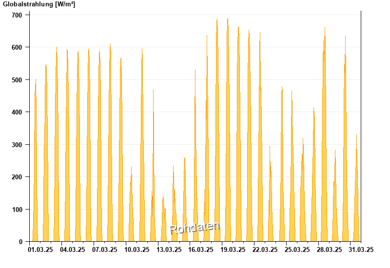 Global radiation from 01.03.2025 to 31.03.2025