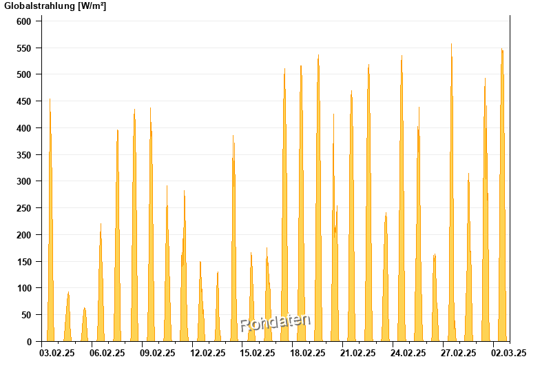 Global radiation from 03.02.2025 to 02.03.2025