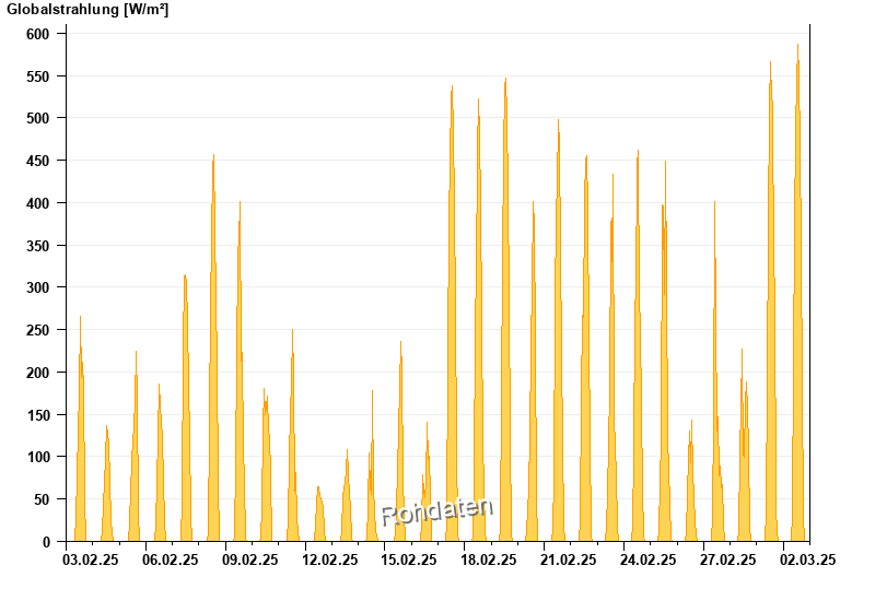Global radiation from 03.02.2025 to 02.03.2025