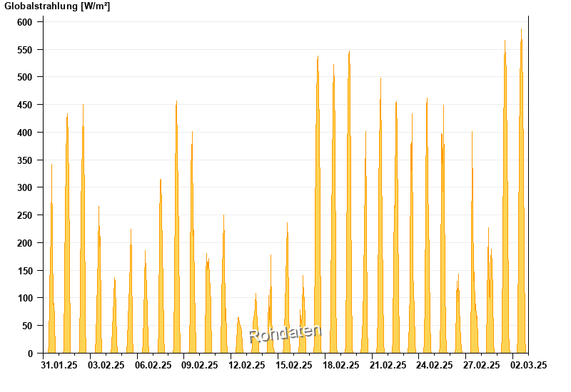 Global radiation from 31.01.2025 to 02.03.2025