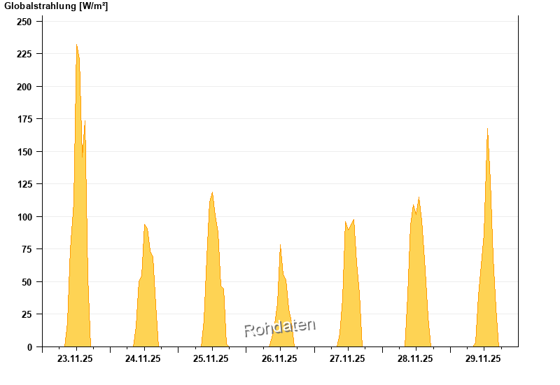 Global radiation from 23.11.2025 to 29.11.2025