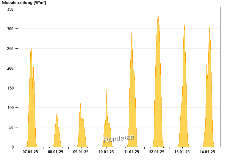 Global radiation from 07.01.2025 to 14.01.2025