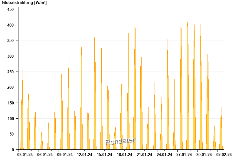 Global radiation from 03.01.2024 to 02.02.2024