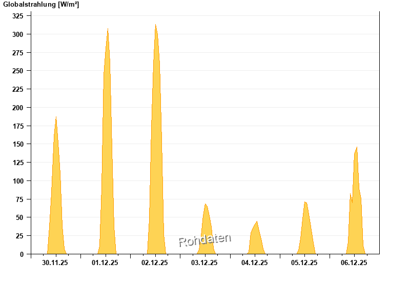 Global radiation from 30.11.2025 to 06.12.2025