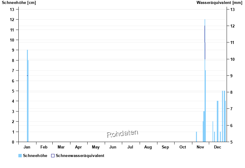 | Date | Snowfall level [cm] | Water equivalent [mm] |
