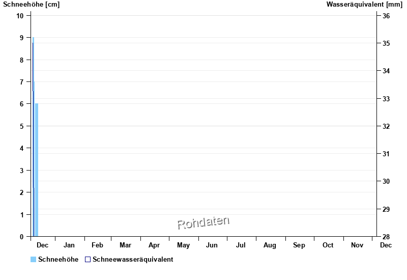| Date | Snowfall level [cm] | Water equivalent [mm] |