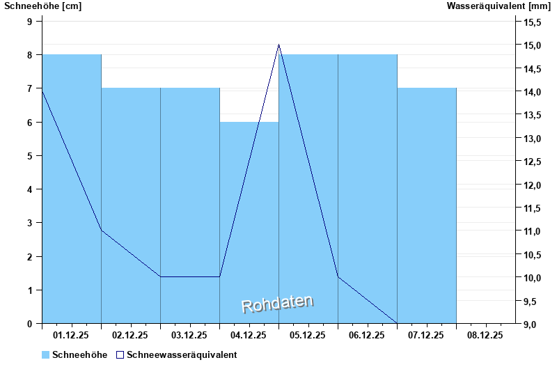 | Date | Snowfall level [cm] | Water equivalent [mm] |