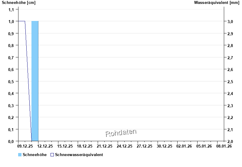 | Date | Snowfall level [cm] | Water equivalent [mm] |