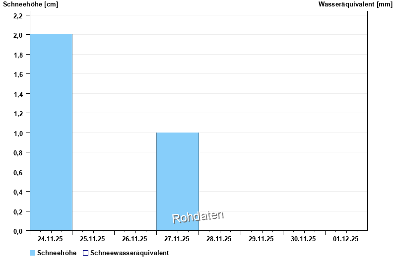 | Date | Snowfall level [cm] | Water equivalent [mm] |