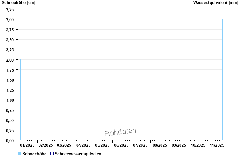| Date | Snowfall level [cm] | Water equivalent [mm] |