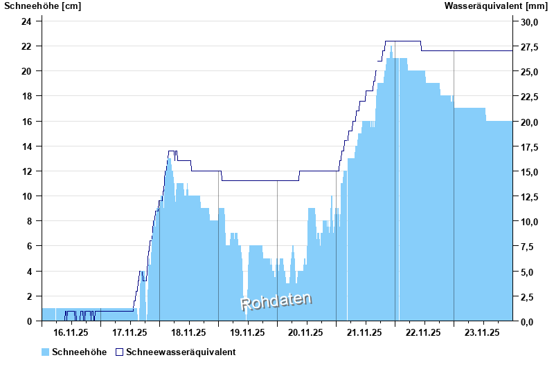 | Date | Snowfall level [cm] | Water equivalent [mm] |