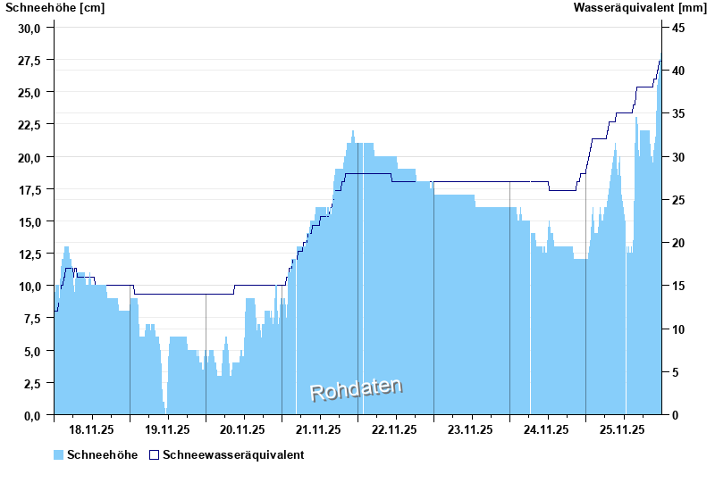 | Date | Snowfall level [cm] | Water equivalent [mm] |