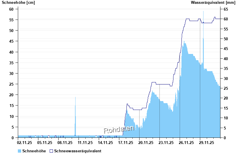 | Date | Snowfall level [cm] | Water equivalent [mm] |