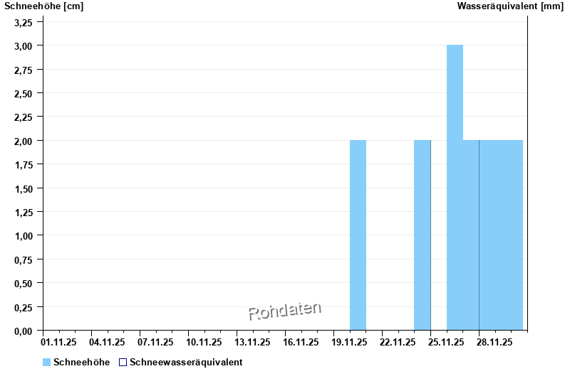 | Date | Snowfall level [cm] | Water equivalent [mm] |