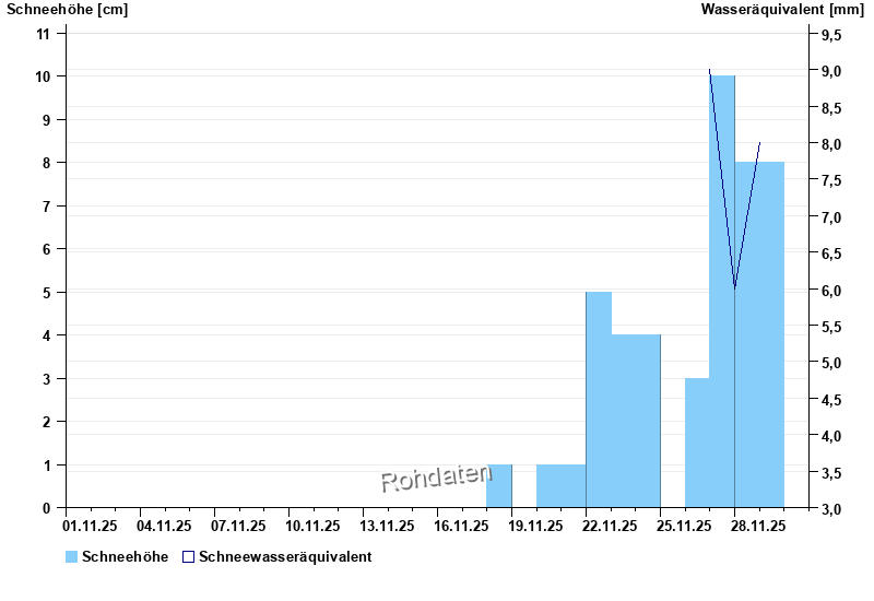 | Date | Snowfall level [cm] | Water equivalent [mm] |