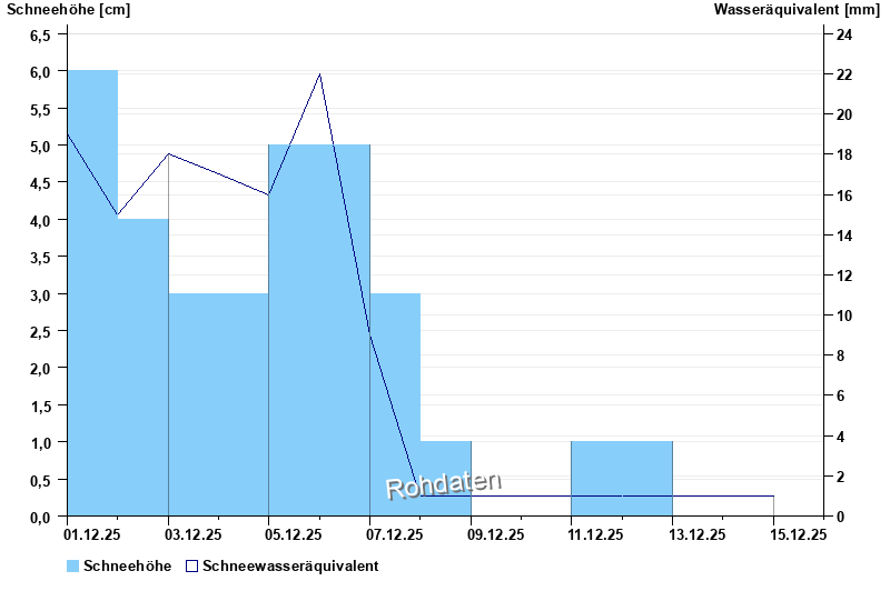 | Date | Snowfall level [cm] | Water equivalent [mm] |