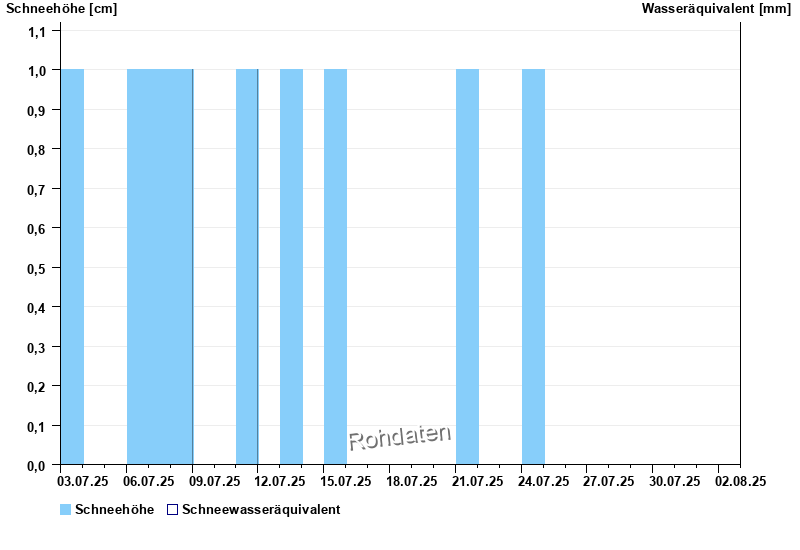 | Date | Snowfall level [cm] | Water equivalent [mm] |
