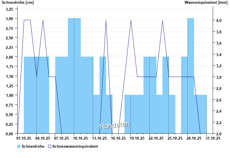 | Date | Snowfall level [cm] | Water equivalent [mm] |