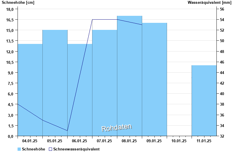 | Date | Snowfall level [cm] | Water equivalent [mm] |