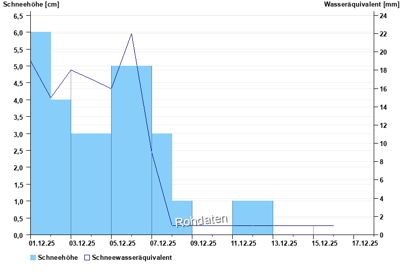 | Date | Snowfall level [cm] | Water equivalent [mm] |