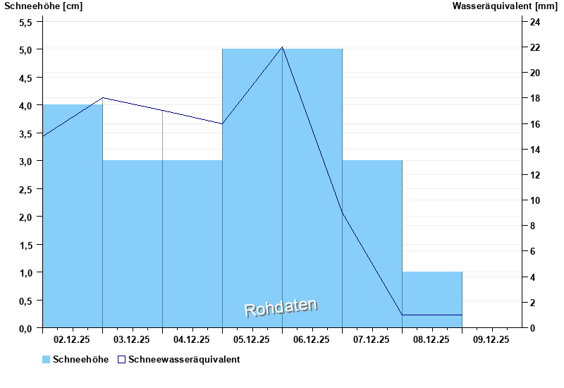 | Date | Snowfall level [cm] | Water equivalent [mm] |