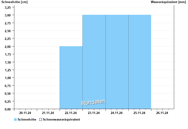 | Date | Snowfall level [cm] | Water equivalent [mm] |