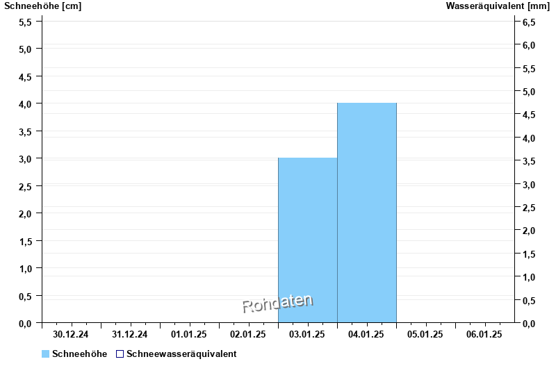 | Date | Snowfall level [cm] | Water equivalent [mm] |