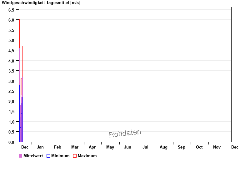 | Date | Mean value [m/s] | Maximum [m/s] | Minimum [m/s] |