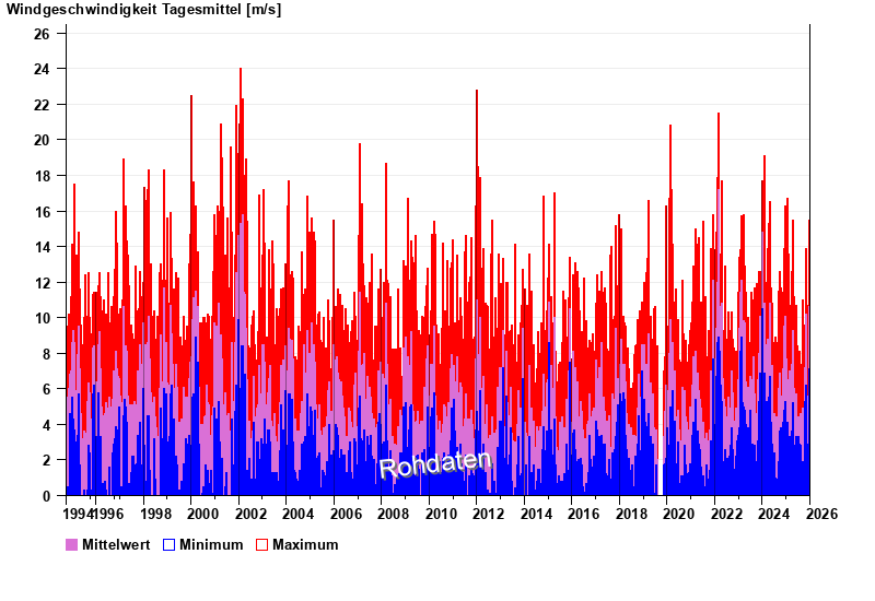 | Date | Mean value [m/s] | Maximum [m/s] | Minimum [m/s] |