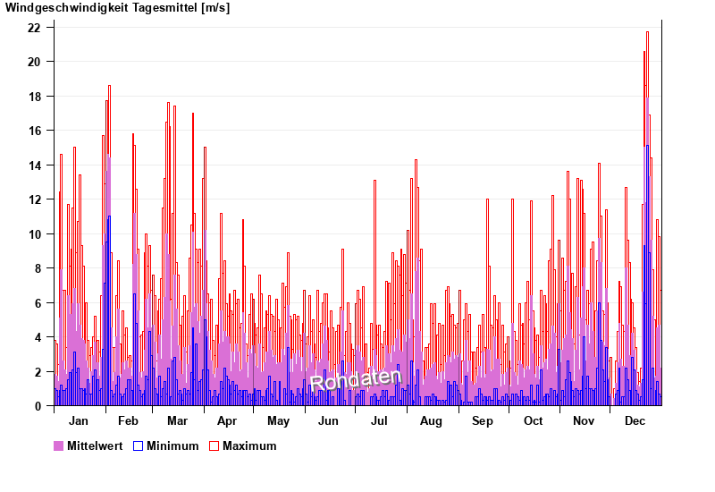 | Date | Mean value [m/s] | Maximum [m/s] | Minimum [m/s] |