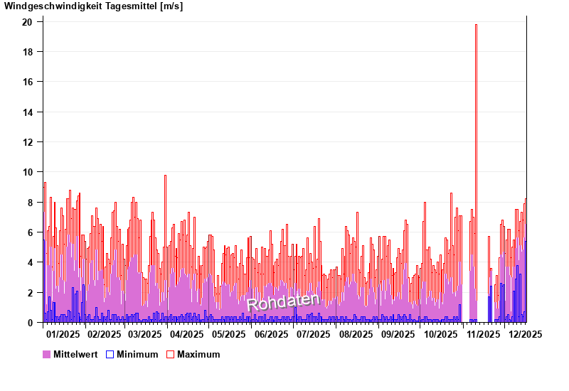 | Date | Mean value [m/s] | Maximum [m/s] | Minimum [m/s] |