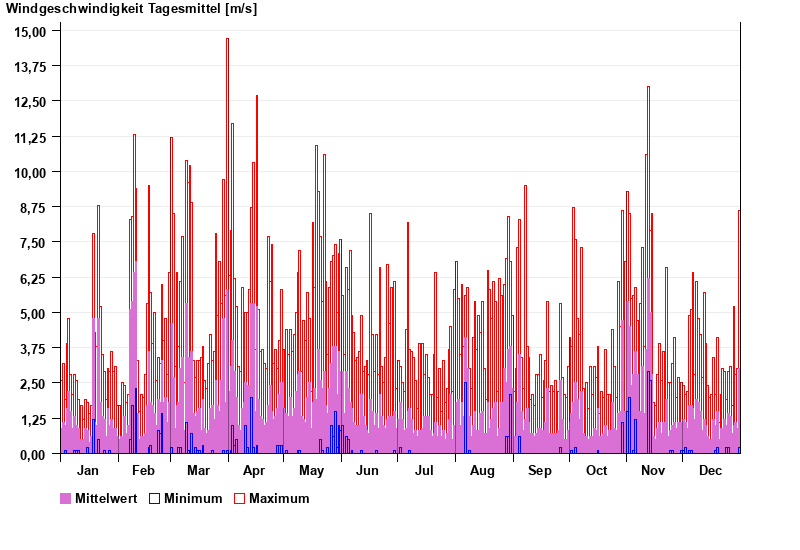 | Date | Mean value [m/s] | Maximum [m/s] | Minimum [m/s] |