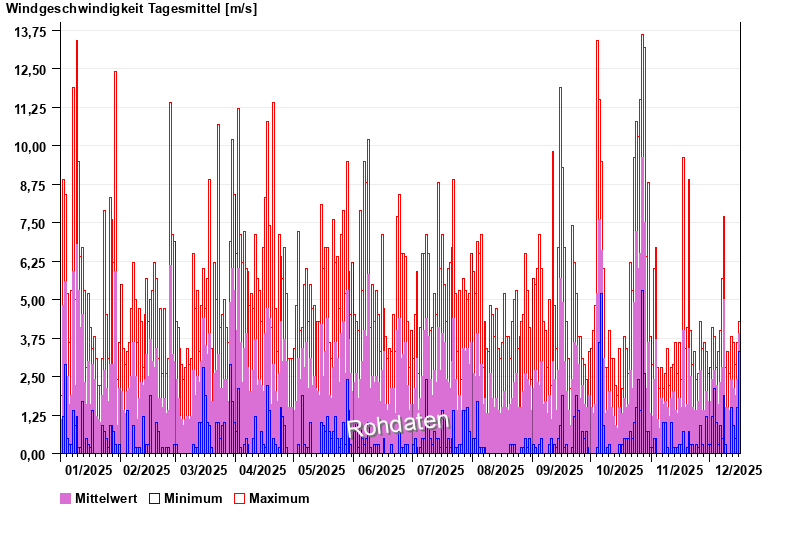 | Date | Mean value [m/s] | Maximum [m/s] | Minimum [m/s] |