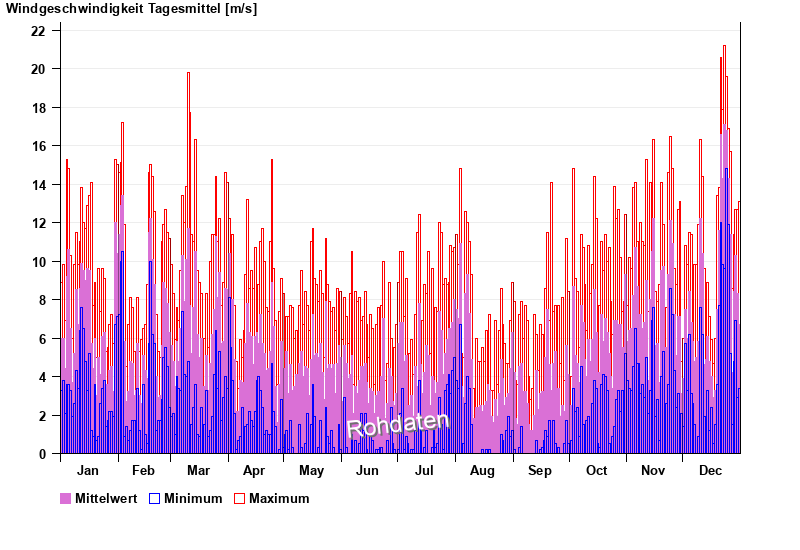 | Date | Mean value [m/s] | Maximum [m/s] | Minimum [m/s] |