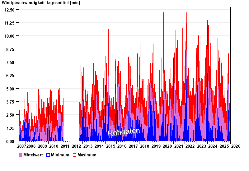 | Date | Mean value [m/s] | Maximum [m/s] | Minimum [m/s] |