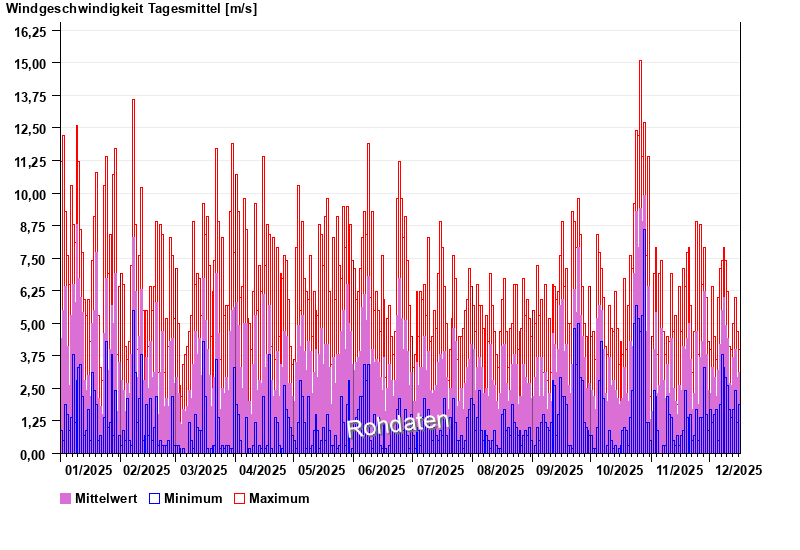 | Date | Mean value [m/s] | Maximum [m/s] | Minimum [m/s] |
