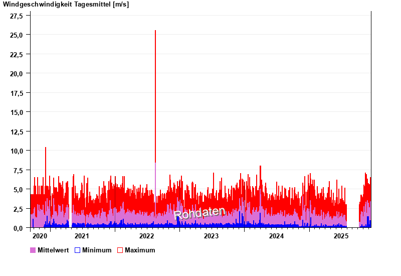 | Date | Mean value [m/s] | Maximum [m/s] | Minimum [m/s] |