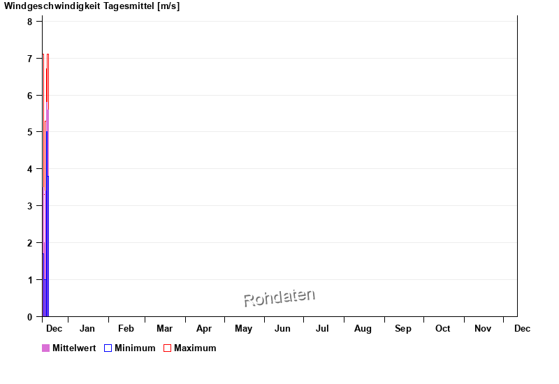 | Date | Mean value [m/s] | Maximum [m/s] | Minimum [m/s] |