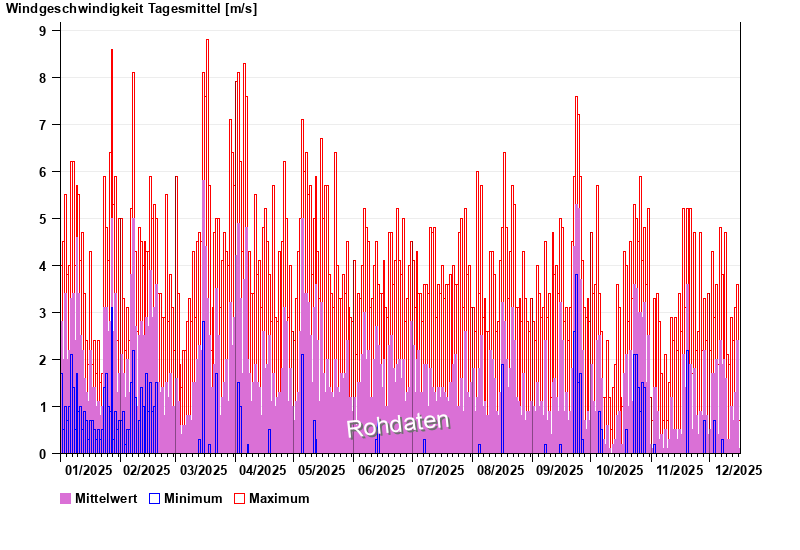 | Date | Mean value [m/s] | Maximum [m/s] | Minimum [m/s] |