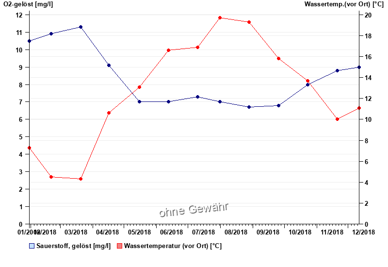 | Date | O2-gelöst [mg/l] | Wassertemp.(vor Ort) [°C] |