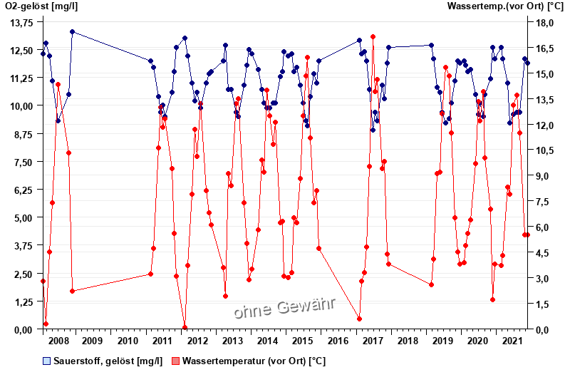 | Date | O2-gelöst [mg/l] | Wassertemp.(vor Ort) [°C] |