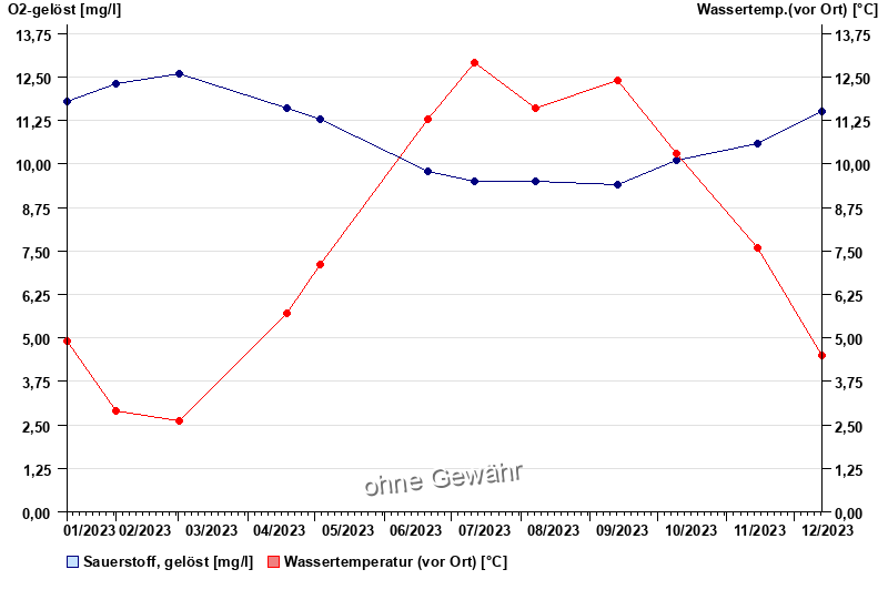 | Date | O2-gelöst [mg/l] | Wassertemp.(vor Ort) [°C] |
