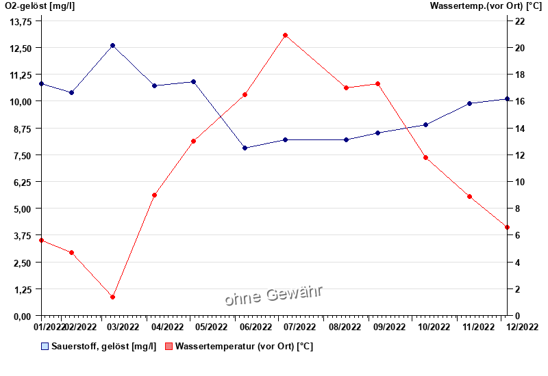 | Date | O2-gelöst [mg/l] | Wassertemp.(vor Ort) [°C] |