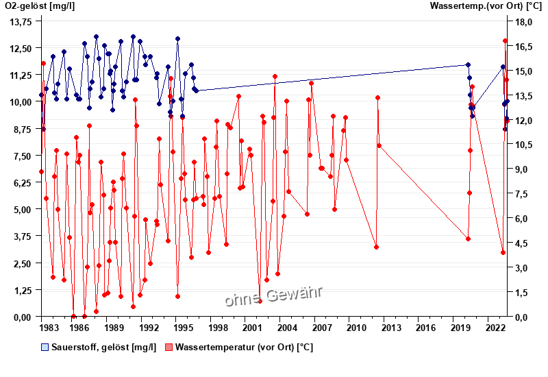 | Date | O2-gelöst [mg/l] | Wassertemp.(vor Ort) [°C] |