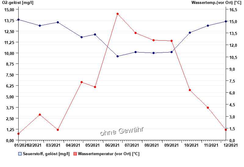 | Date | O2-gelöst [mg/l] | Wassertemp.(vor Ort) [°C] |