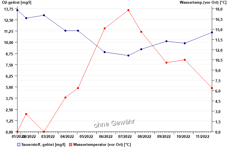| Date | O2-gelöst [mg/l] | Wassertemp.(vor Ort) [°C] |