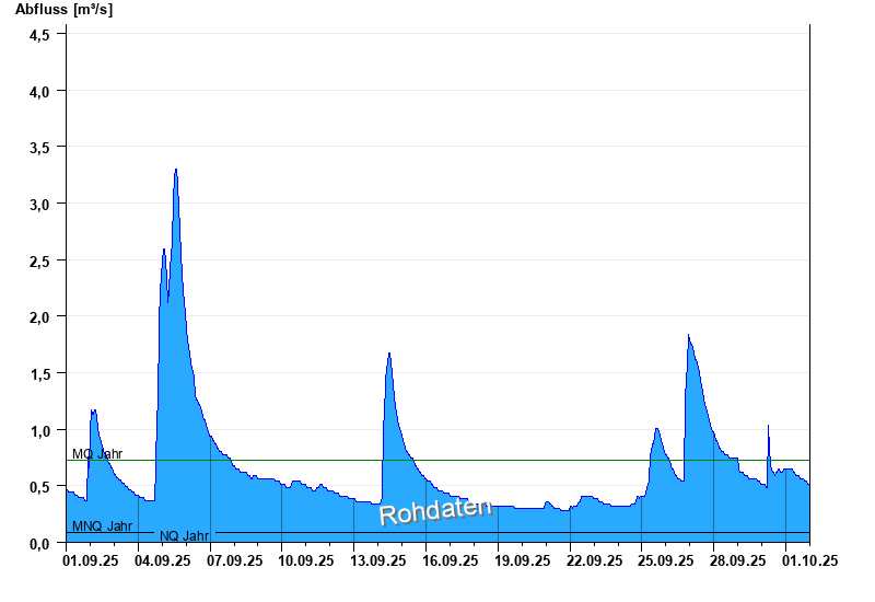 - Mittlerer Niedrigwasserabfluss MNQ 0,085 m³/s