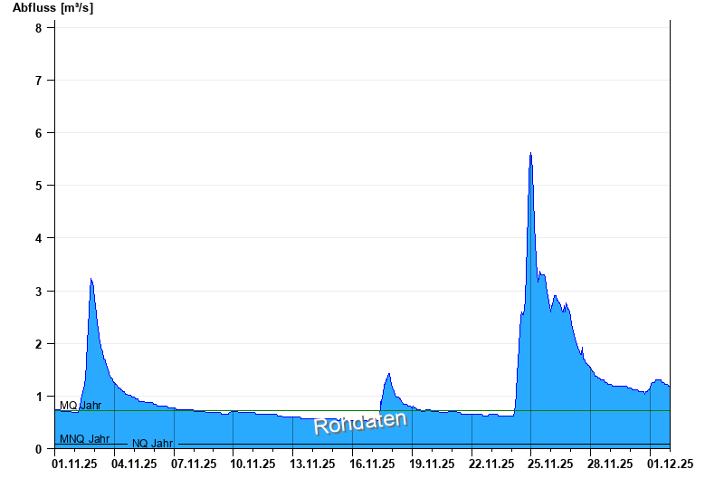 - Mittlerer Niedrigwasserabfluss MNQ 0,085 m³/s
