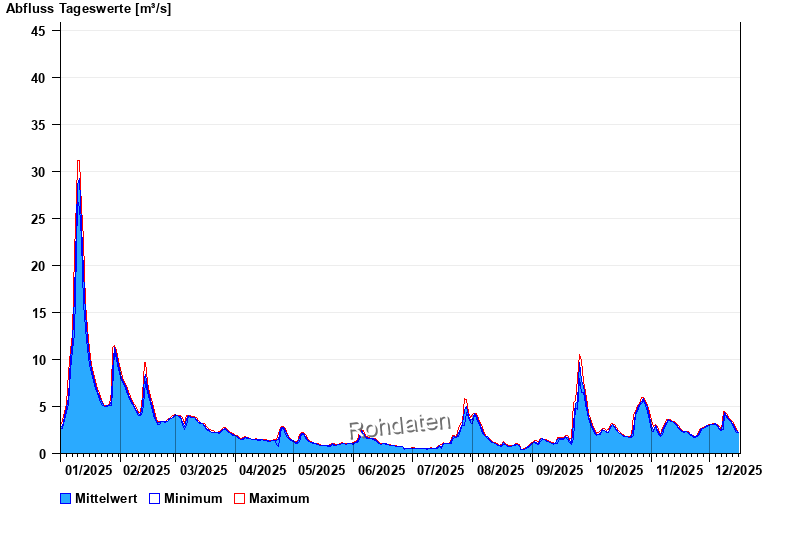 | Date | Mean value [m³/s] | Maximum [m³/s] | Minimum [m³/s] |