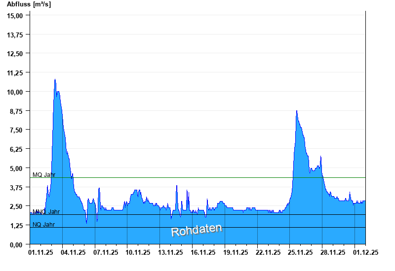- Niedrigwasserabfluss NQ 1,1 m³/s